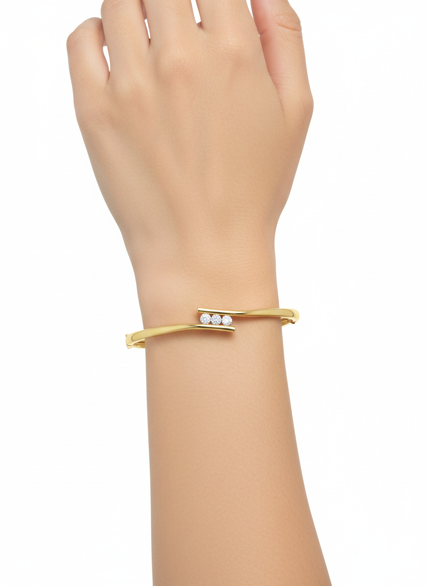 Lab Diamond 3 stone 0.36ct F-VS Bangle in 9k Gold
