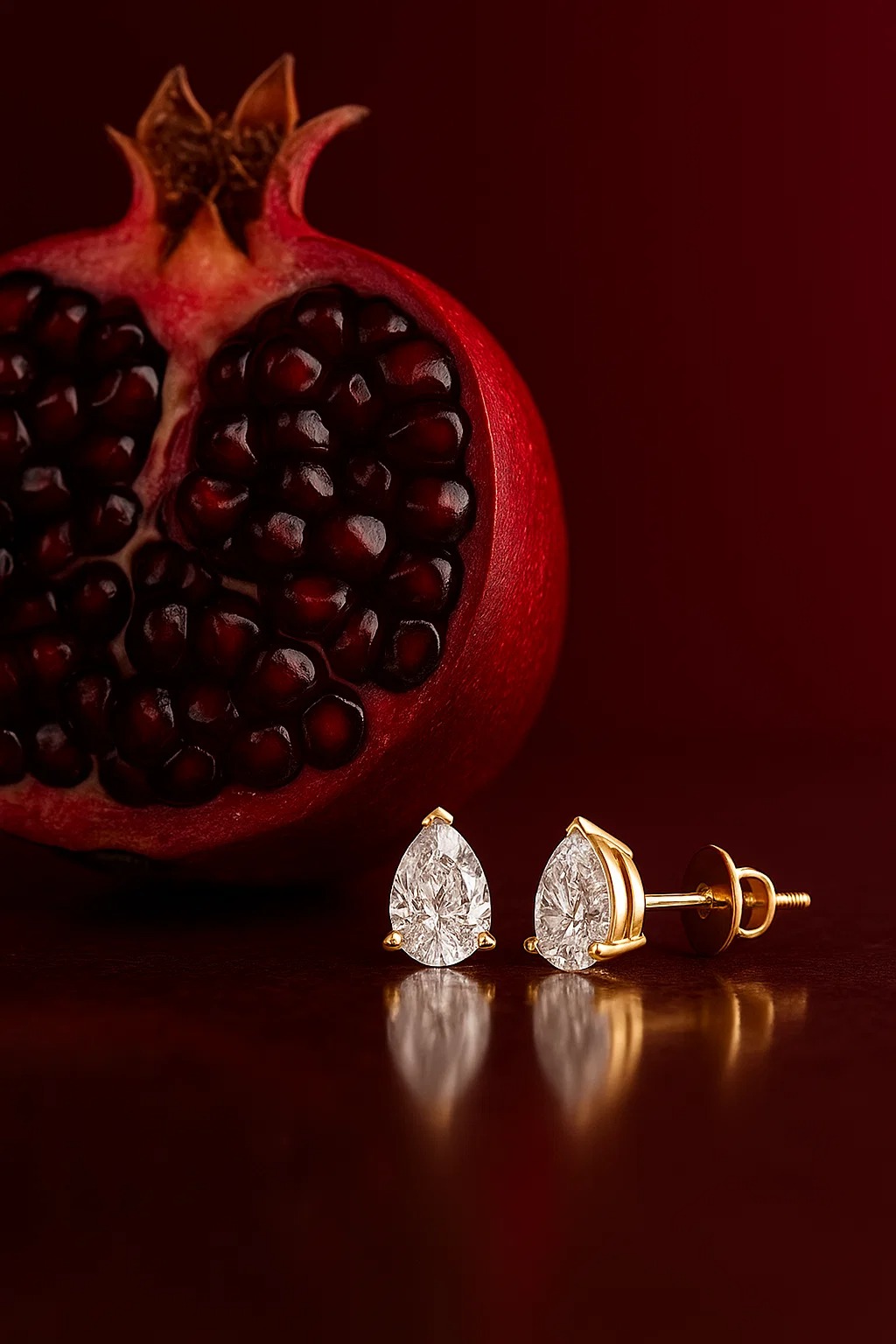 Lab Diamond 1.040 carat pear cut stud earring in 18k Gold