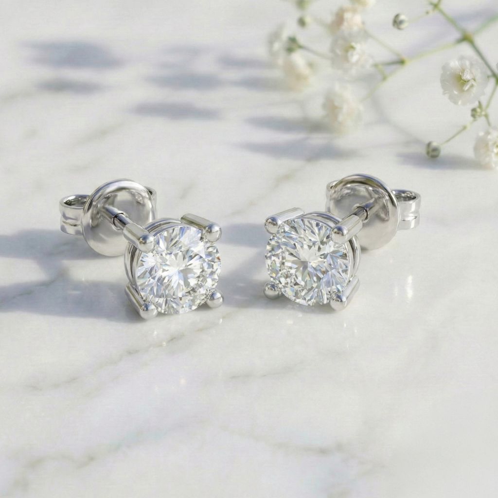 Lab Diamond 1.040 carat oval cut stud earring in 18k Gold