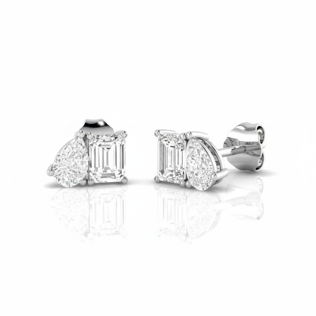 Lab Diamond 1.040 carat pear cut stud earring in 18k Gold