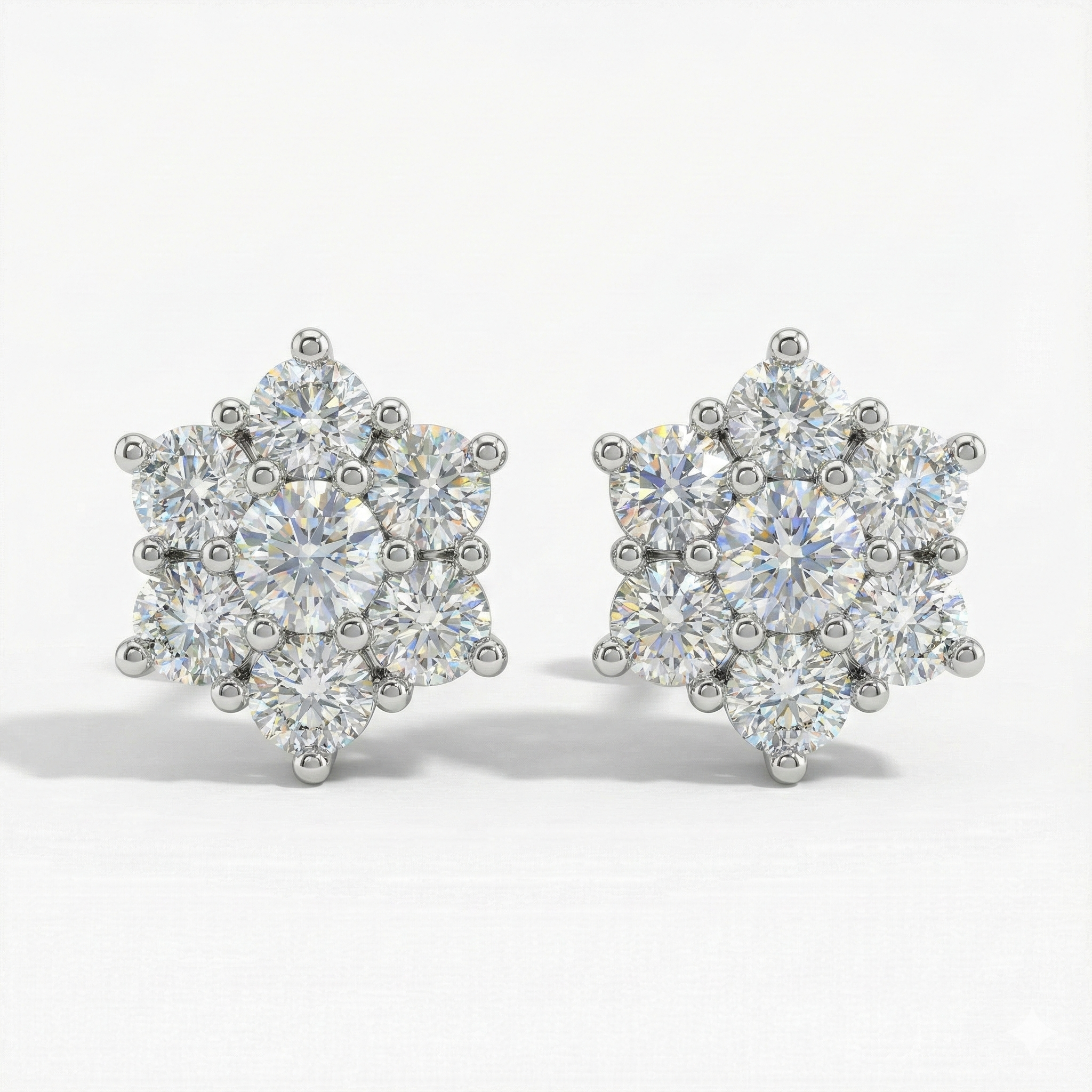 Lab Diamond Heart Cluster 1.15ct F/VS Earrings in 9k Gold