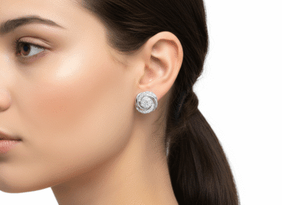 Delicate and romantic, these Lab Diamond Rose Shaped Earrings feature 0.44ct of shimmering lab-grown diamonds in elegant F/VS quality. Set in polished 9k gold, the floral-inspired design adds a graceful touch of sparkle—perfect for everyday wear or a thoughtful gift.