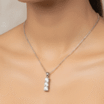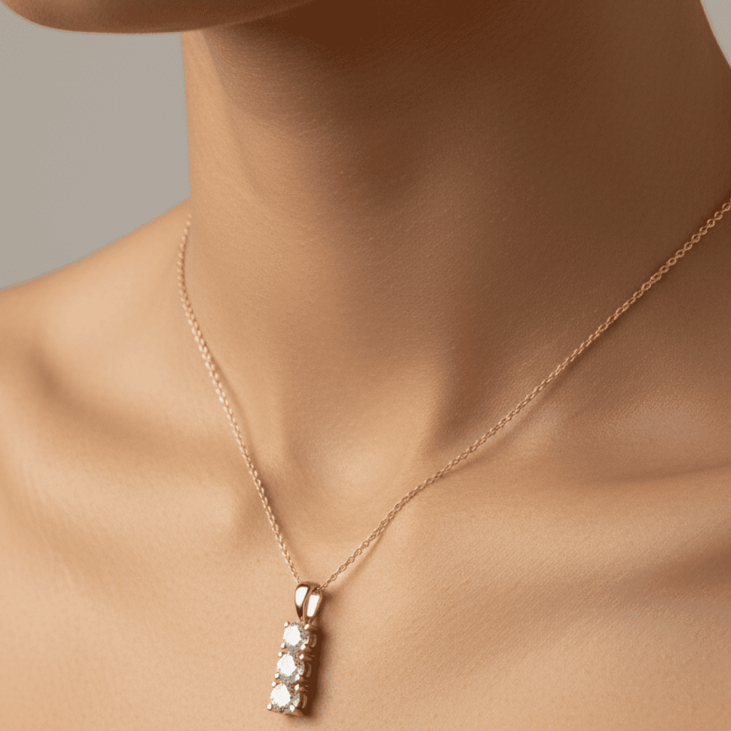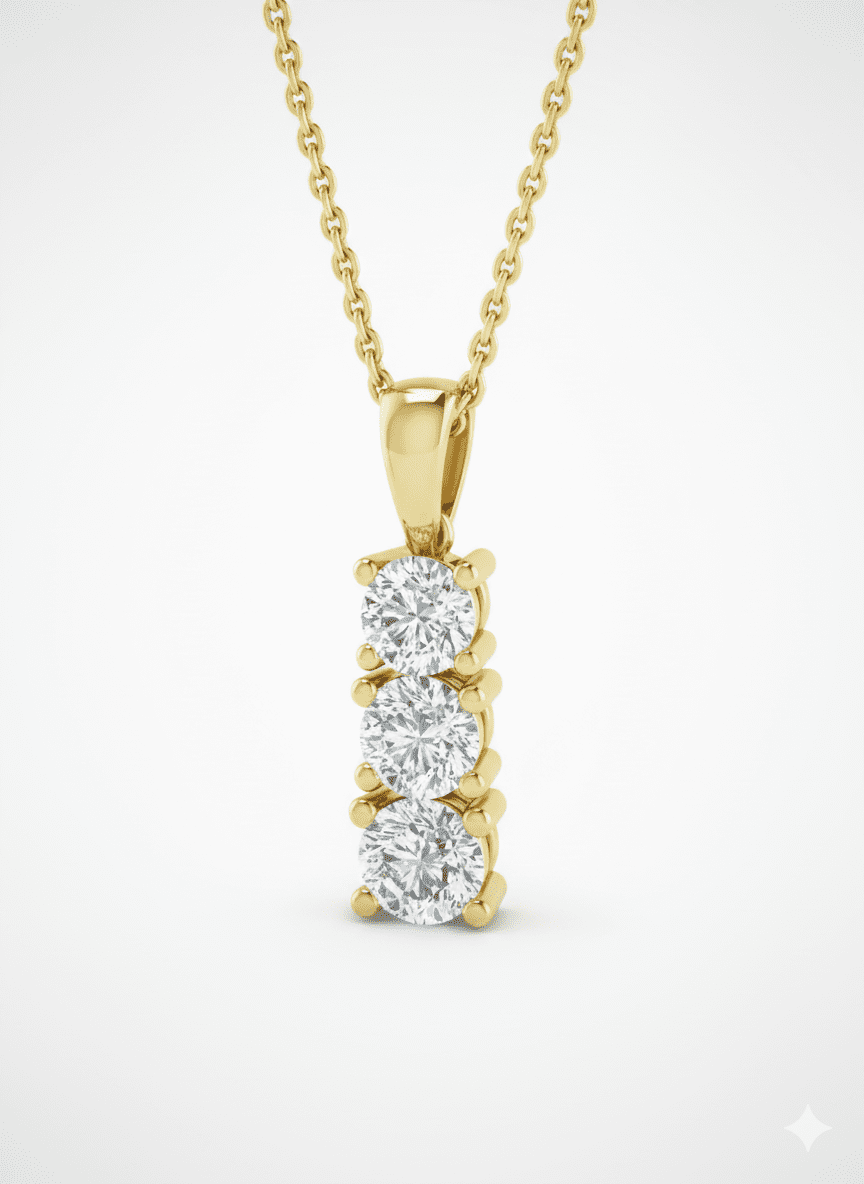 A sleek line drop pendant crafted in 9K gold, set with three round lab-grown diamonds totalling 0.96ct. Selected in F colour and VS clarity, the diamonds offer clean, refined brilliance. Lightweight at 0.8g and paired with a fine chain, this pendant is an elegant choice for everyday wear or subtle evening styling.