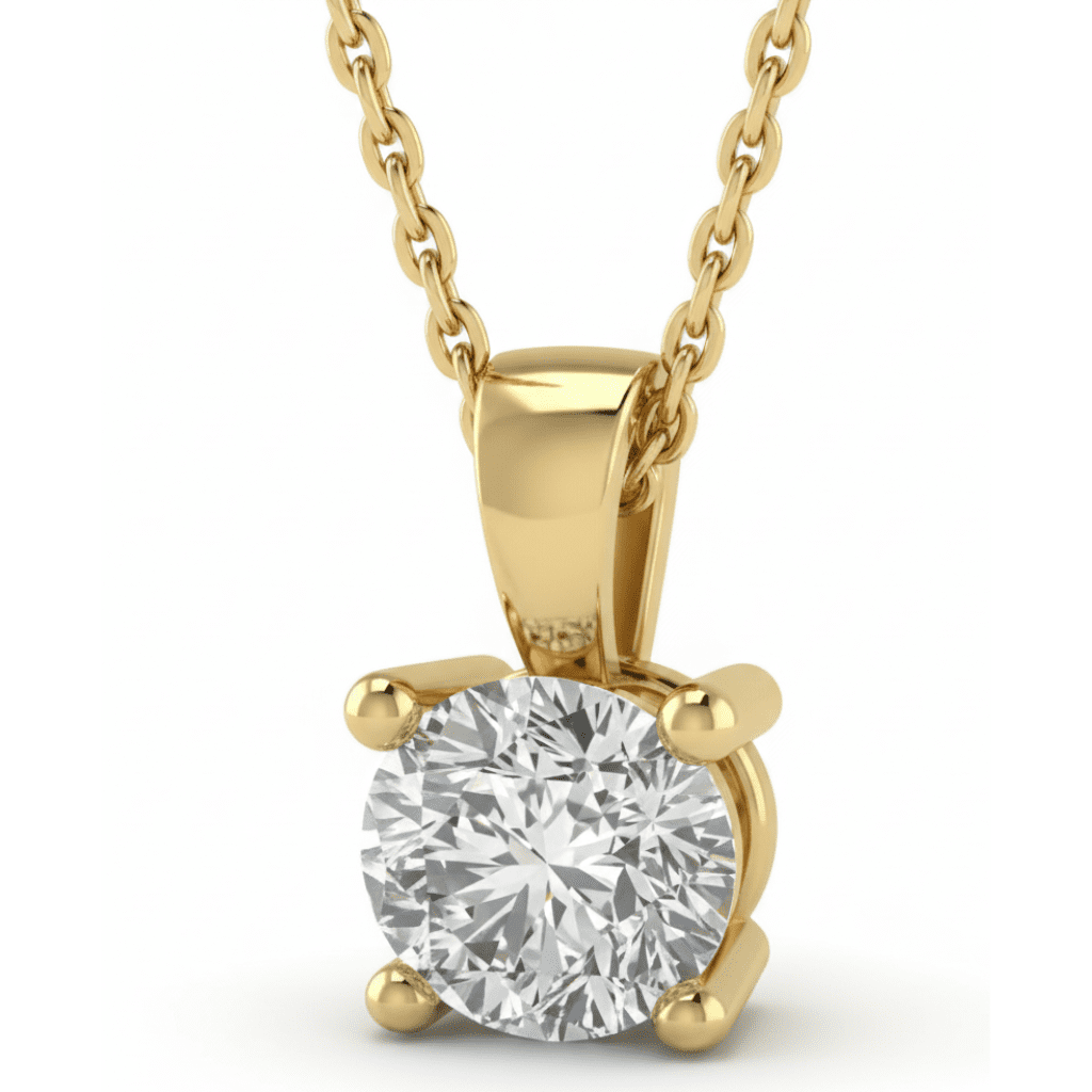 A refined pendant crafted in 9K gold, set with a single round lab-grown diamond totalling 1.01ct. Graded F colour and VS clarity, the diamond offers clean, balanced brilliance. Lightweight at 0.7g and paired with a fine chain, this timeless design is made for effortless, everyday elegance.