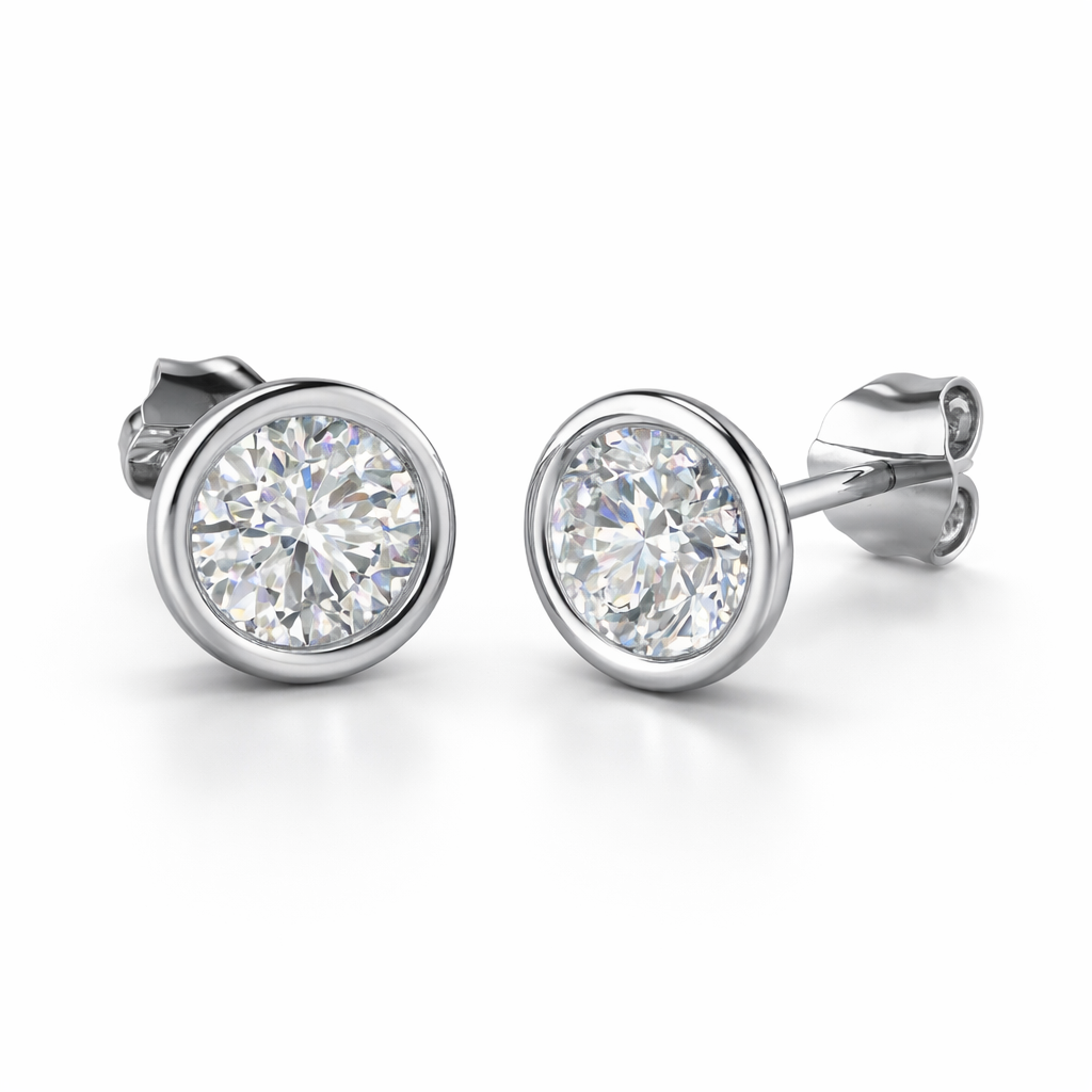 Sleek and modern, these rub-over (bezel-set) stud earrings feature 1.02 carats total weight of lab-grown diamonds in F color and VS clarity, beautifully set in 18K gold. The smooth, secure setting enhances brilliance while offering a refined contemporary look—perfect for everyday elegance and lasting comfort.
