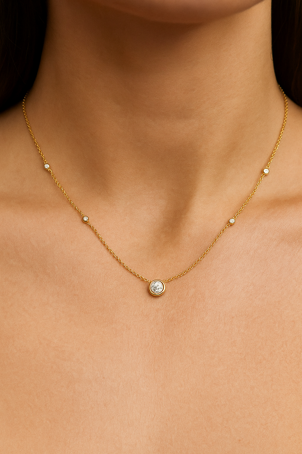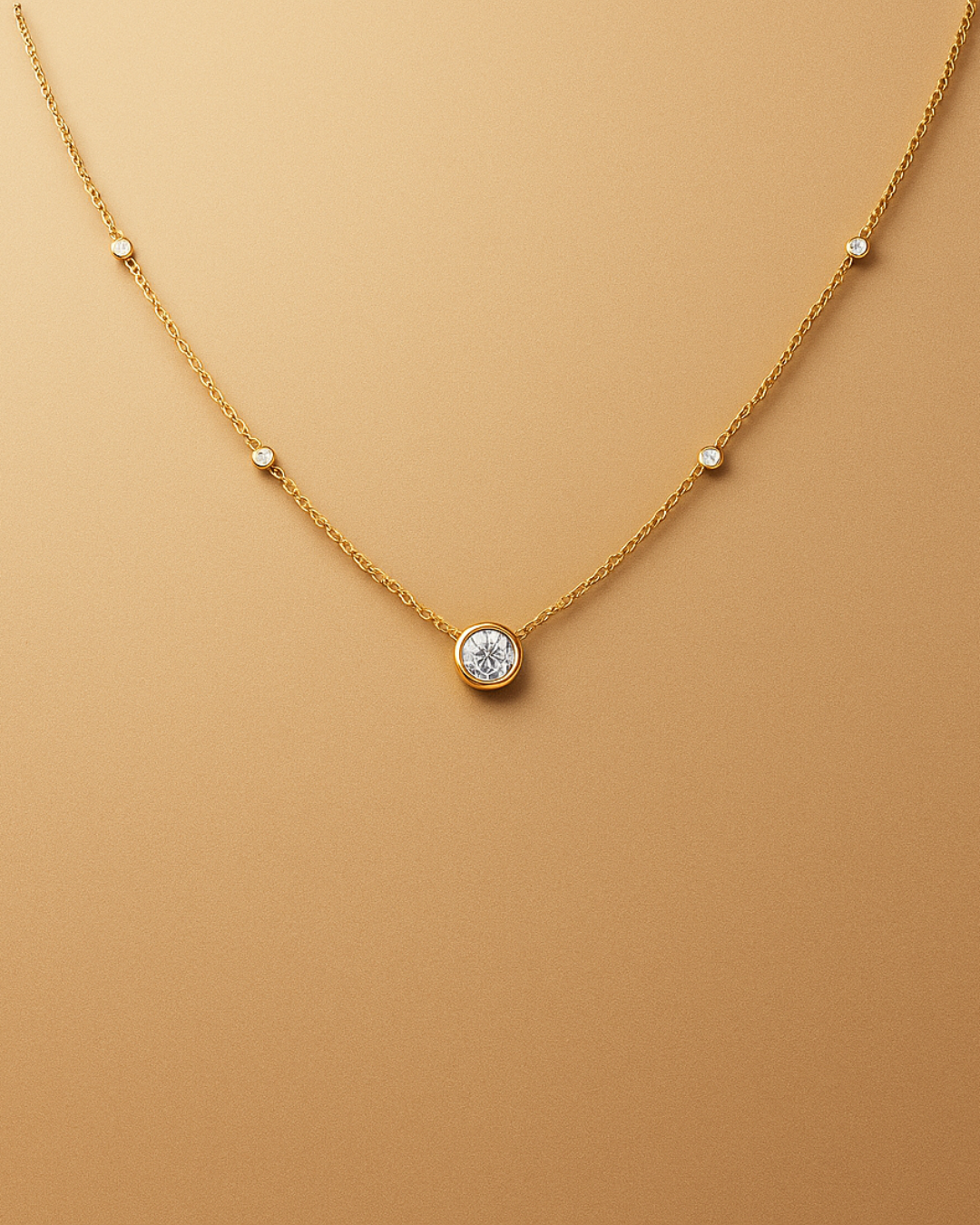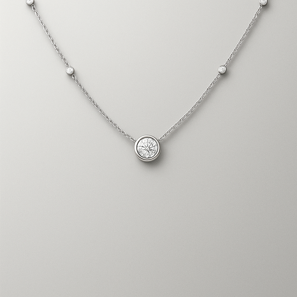 Experience pure sophistication with this 9k gold necklace featuring seven round lab-grown diamonds totaling 1.17ct. Expertly crafted at 3g, it delivers brilliant sparkle and timeless elegance. A sustainable, luxurious piece designed to catch the light from every angle—perfect for everyday wear or special occasions.