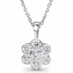 An expression of quiet luxury, this refined flower cluster pendant is crafted in 9K white gold and set with seven round lab-grown diamonds totalling 1.94ct. Selected in F colour and VS clarity, the diamonds offer a soft, luminous brilliance without excess. Gracefully lightweight at 2.1g and paired with a fine chain, this piece is designed for understated elegance and effortless sophistication.
