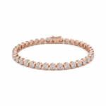 This 4.0-carat lab-grown diamond tennis bracelet offers a refined, contemporary take on a classic silhouette. Each D/VVS stone is secured in a sleek bezel setting, creating a smooth, snag-free finish that feels modern and substantial on the wrist. The warm tones of the 9k rose gold provide a sophisticated backdrop to the brilliant stones, resulting in a piece that is as versatile as it is elegant. Crafted to a 7-inch length and carrying a full UK hallmark, this bracelet is a testament to quality British standards and timeless design, perfect for those who value understated excellence.
