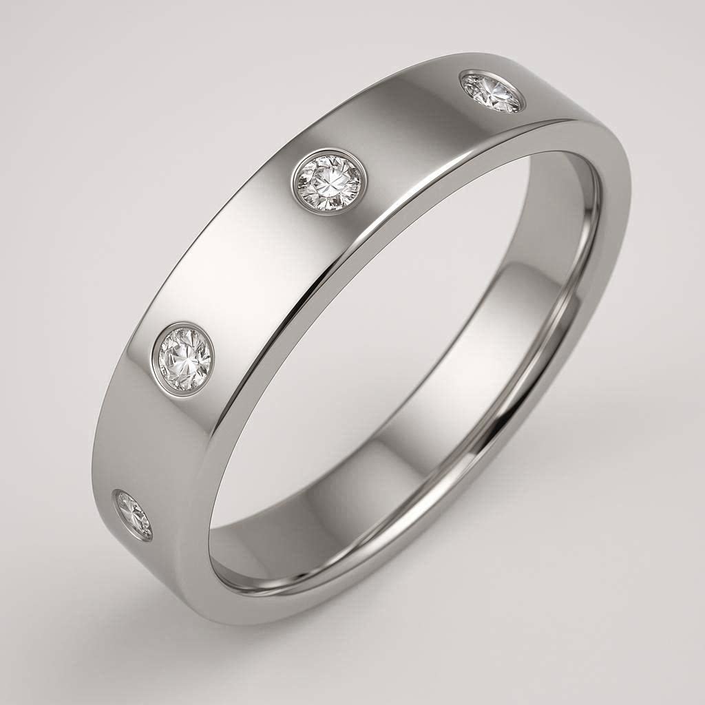 Elegant and timeless, this lab-grown diamond band features five brilliant-cut stones, totaling 0.1 carat of exceptional sparkle. Each diamond is carefully selected for its F color and VS clarity, ensuring a bright, flawless look that radiates sophistication. Set in premium platinum, this ring offers a luxurious finish with lasting durability.