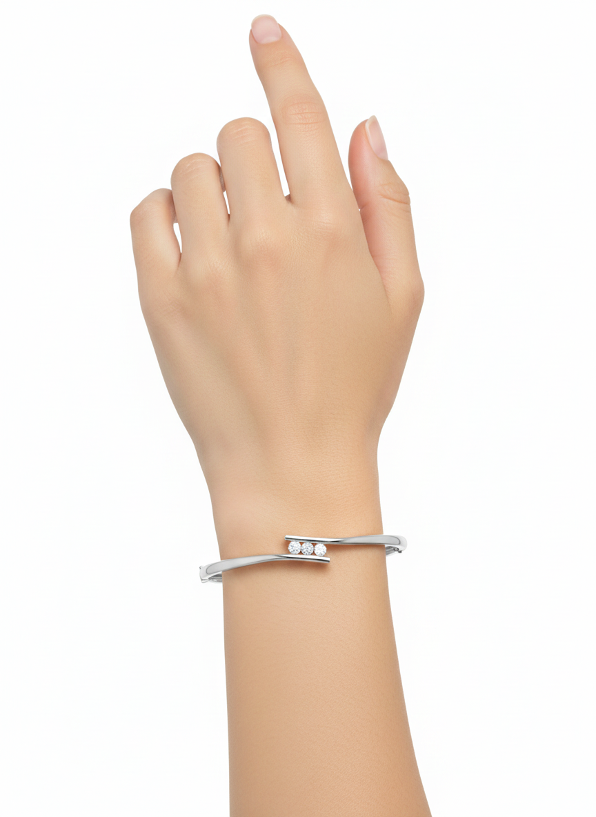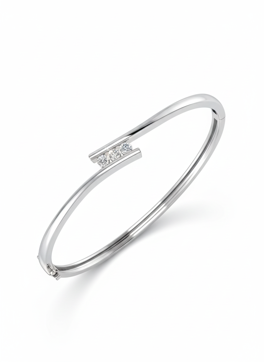 A sleek and timeless bangle available in both 9k yellow gold and 9k white gold. This elegant piece features three sparkling lab-grown diamonds (F-VS), totaling 0.36ct. Designed for everyday wear or special occasions, it adds a refined touch of brilliance to any look.