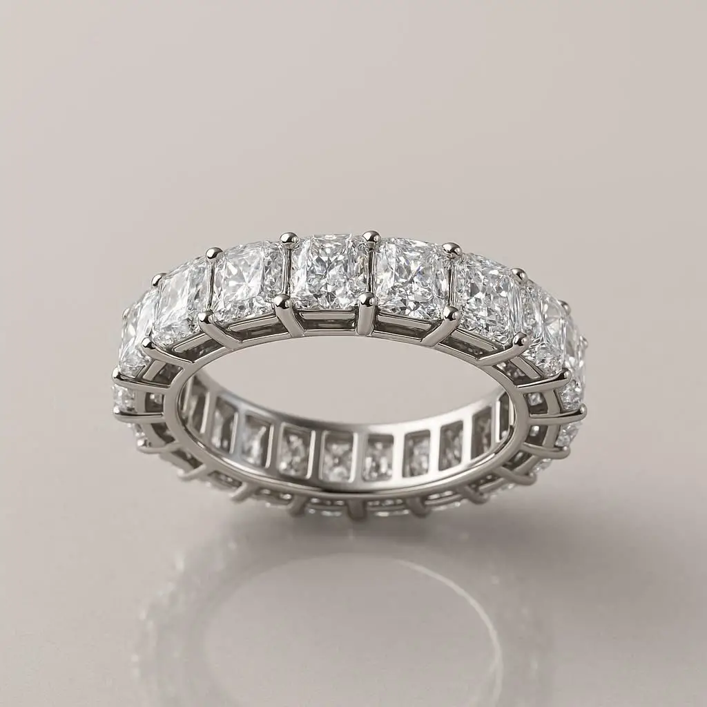 Dazzle endlessly with this exquisite 4.8ct lab-grown radiant cut full eternity ring, crafted in luxurious platinum. Each F/VS diamond delivers exceptional brilliance and fire, symbolizing everlasting love and elegance. Ethically created and expertly set for a flawless, timeless sparkle.