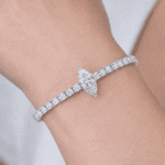 A breathtaking blend of elegance and sparkle — this 5.47ct lab-grown diamond bracelet features a striking 1.03ct E-VS2 marquise centerpiece, surrounded by 65 brilliant F-VS round diamonds totaling 4.44ct. Set in luxurious 9k gold and crafted at a graceful 7.1 inches, it’s a radiant statement of modern sophistication.