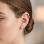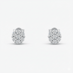 Shop elegant 9K white gold lab grown diamond stud earrings featuring 14 round diamonds, 0.97ct total weight, FVS clarity. Ethical luxury.